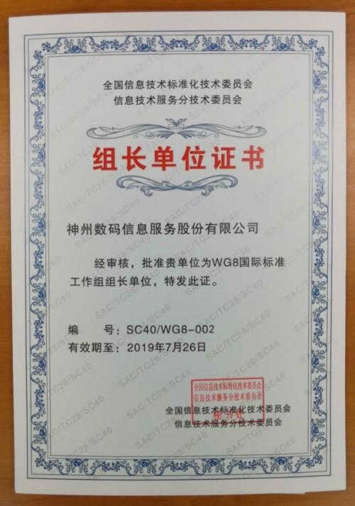 (湖南省政协副主席、ITSS分委会主任委员张大方先生颁发“WG8国际标准组组长单位证书”)