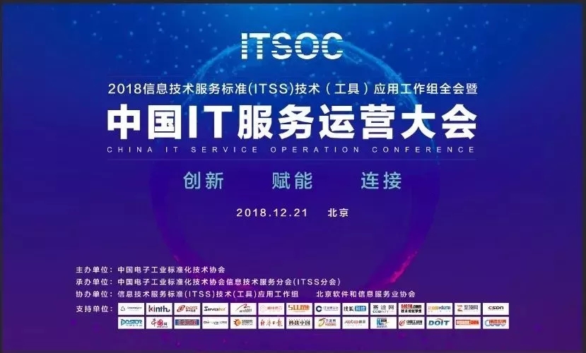 2018年12月21日,首届“中国IT服务运营大会”在北京隆重召开。本届大会由中国电子工业标准化技术协会指导,中国电子工业标准化技术协会信息技术服务分会主办。以“创新·赋能·连接”为主题,是国内首屈一指的高规格IT服务高峰会议。